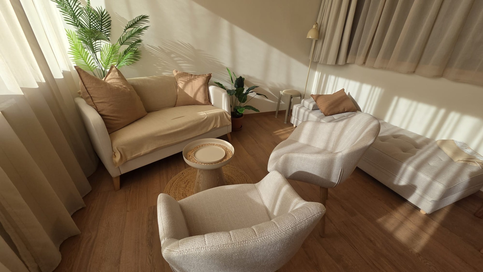 Gli ambienti, curati nei dettagli e dallo stile boho chic zen, offrono un'atmosfera calma, rilassante e professionale.