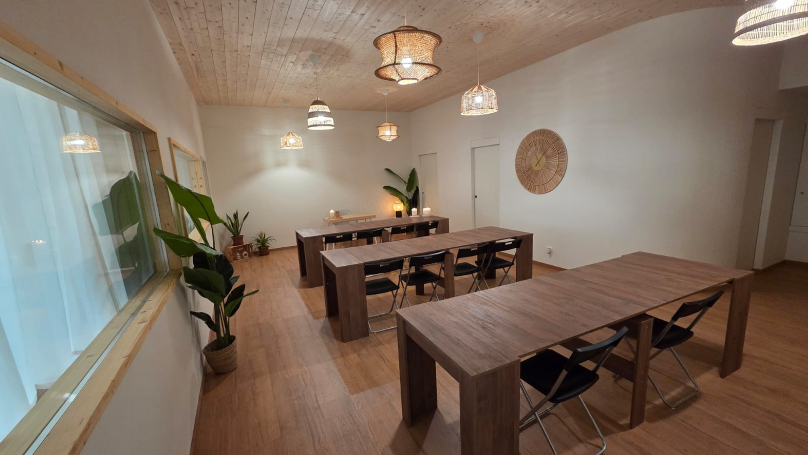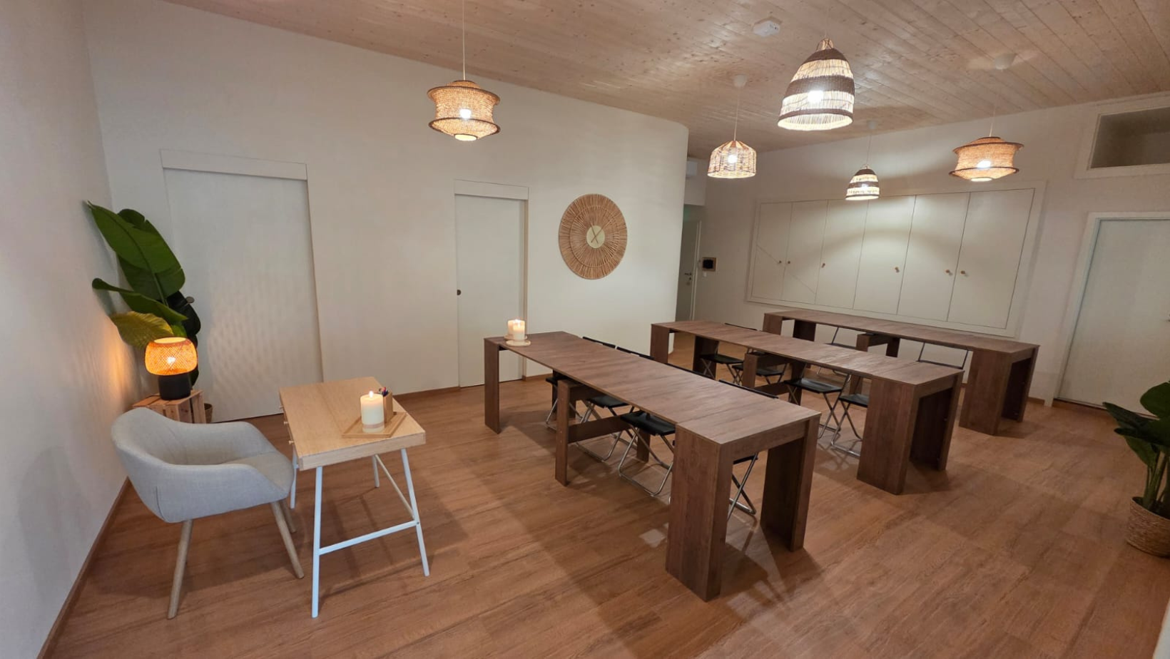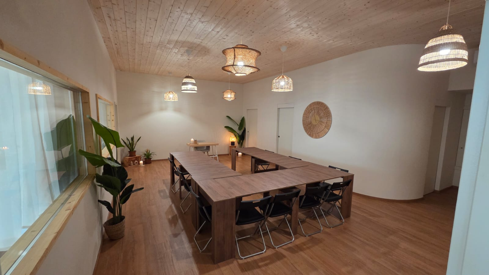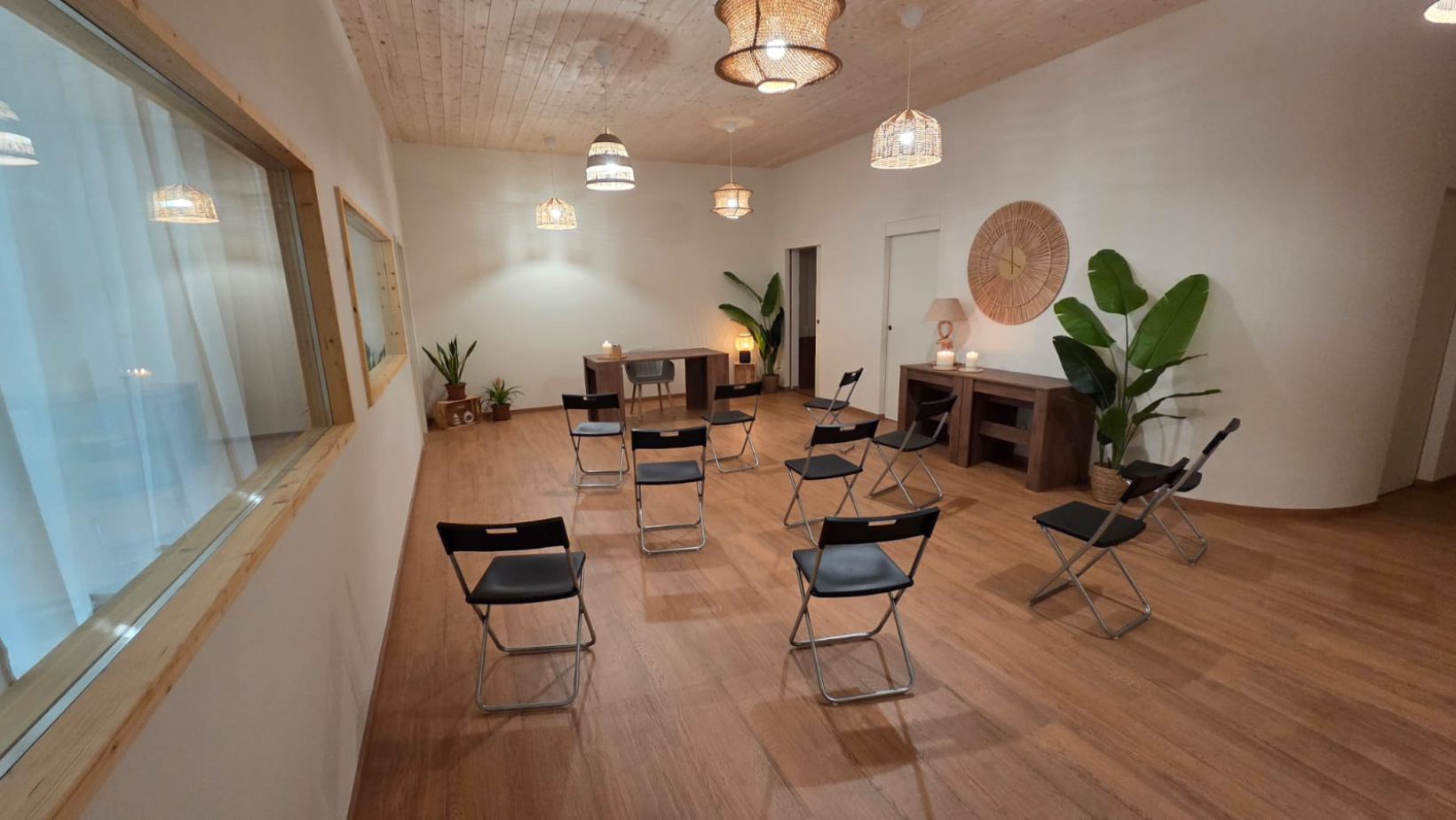 Inoltre, lo spazio è dotato di 3 tavoli apribili (fino a 10 persone ciascuno), 20 sedie e videoproiettore, risultando ideale non solo per attività olistiche, ma anche per formazioni, workshop, conferenze e incontri aziendali o organizzativi.