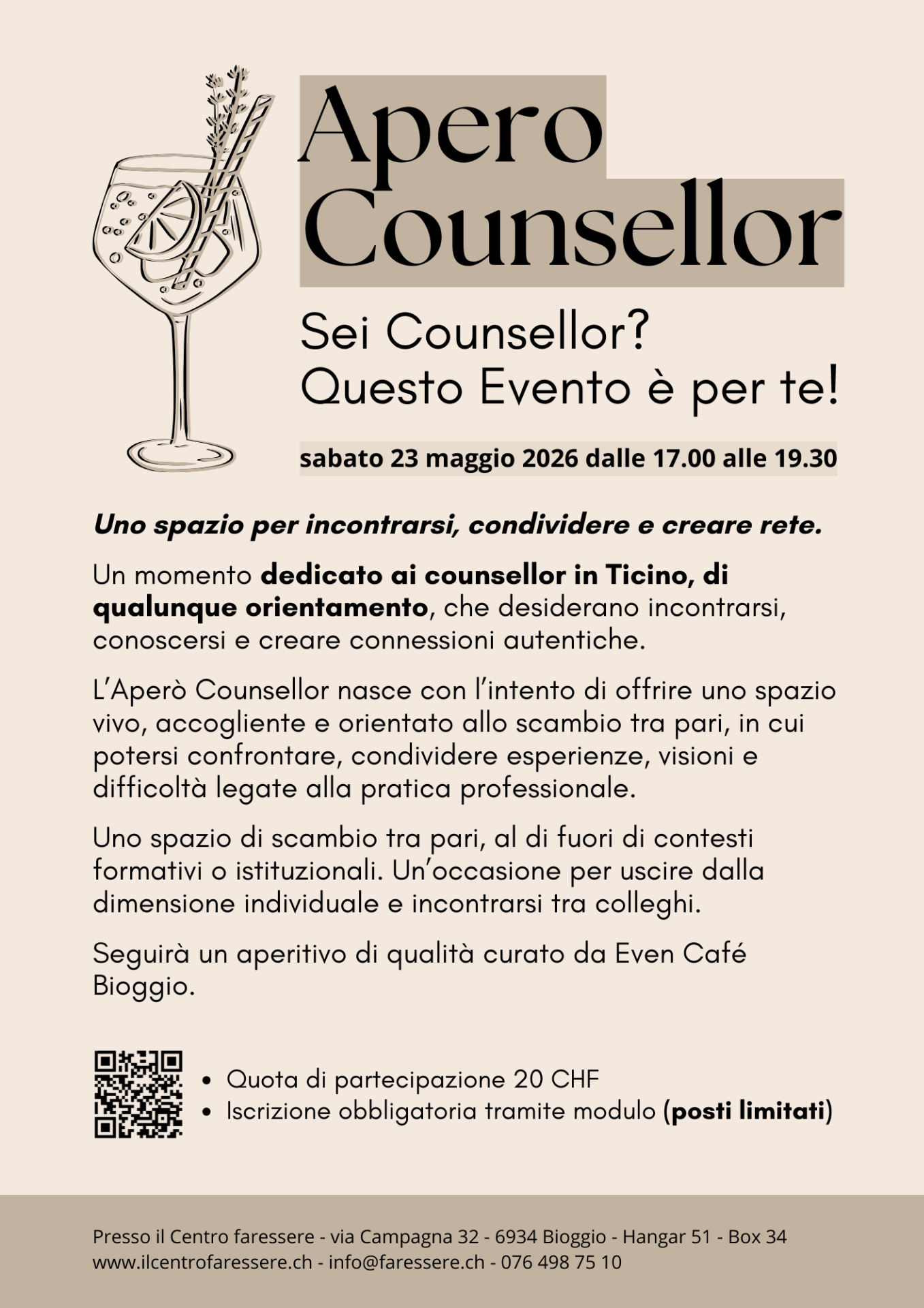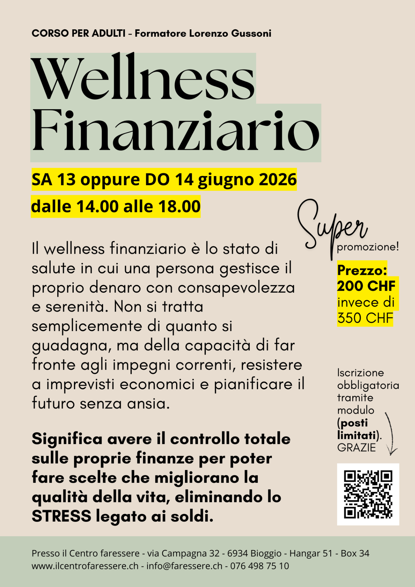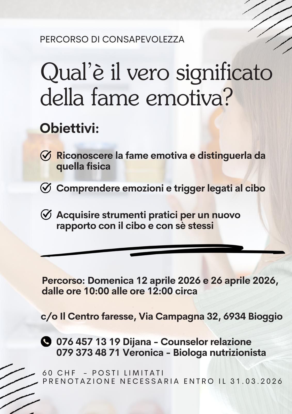 Posti limitati è necessaria la prenotazione: info@faressere.ch