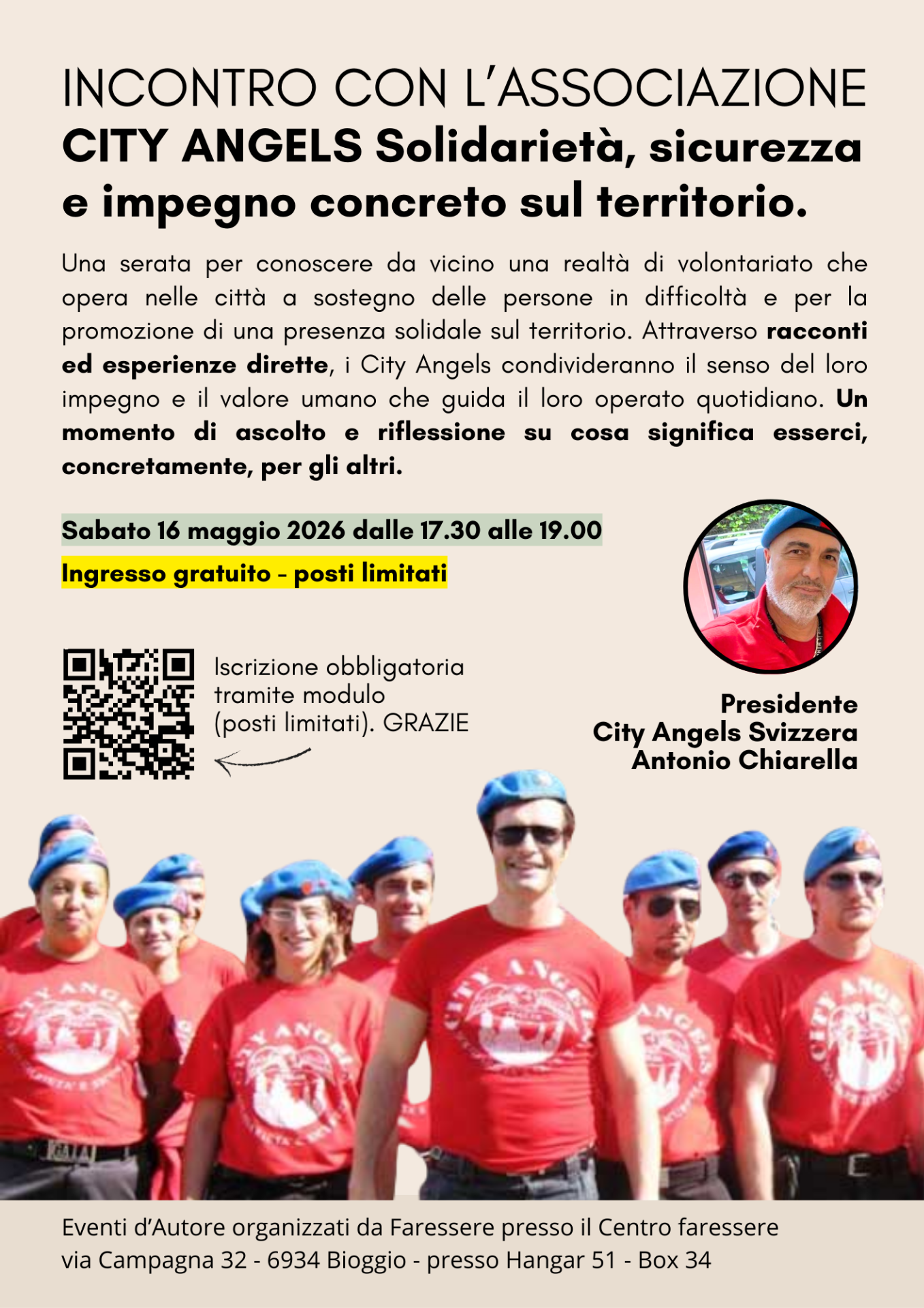Il Centro Faressere ospita un nuovo Incontro d'Autore dedicato a una realtà di volontariato conosciuta e attiva in diverse città: l'Associazione City Angels.